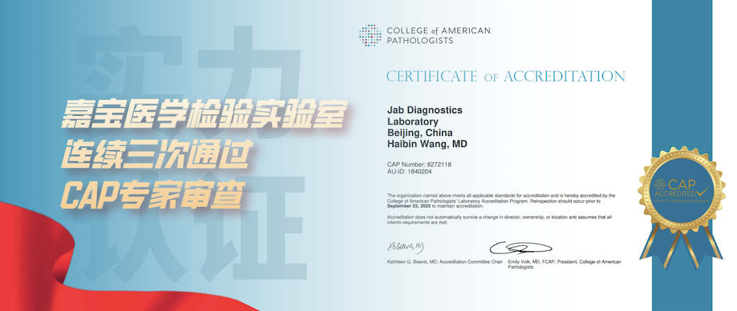 近日, 嘉寶仁和旗下北京嘉寶醫(yī)學(xué)檢驗(yàn)實(shí)驗(yàn)室順利通過美國病理學(xué)家協(xié)會 (College of American Pathologists,簡稱CAP) 兩年一次的專家復(fù)審 。本次實(shí)驗(yàn)室評審中, 胚胎植入前染色體非整倍體檢測(PGT-A-4M/1M)、胚胎植入前單基因病檢測(PGT-M)、胚胎植入前羅氏易位攜帶者檢測(PGT-SR)、胚胎植入前HLA配型檢測(PGT-HLA)、染色體拷貝數(shù)變異檢...
