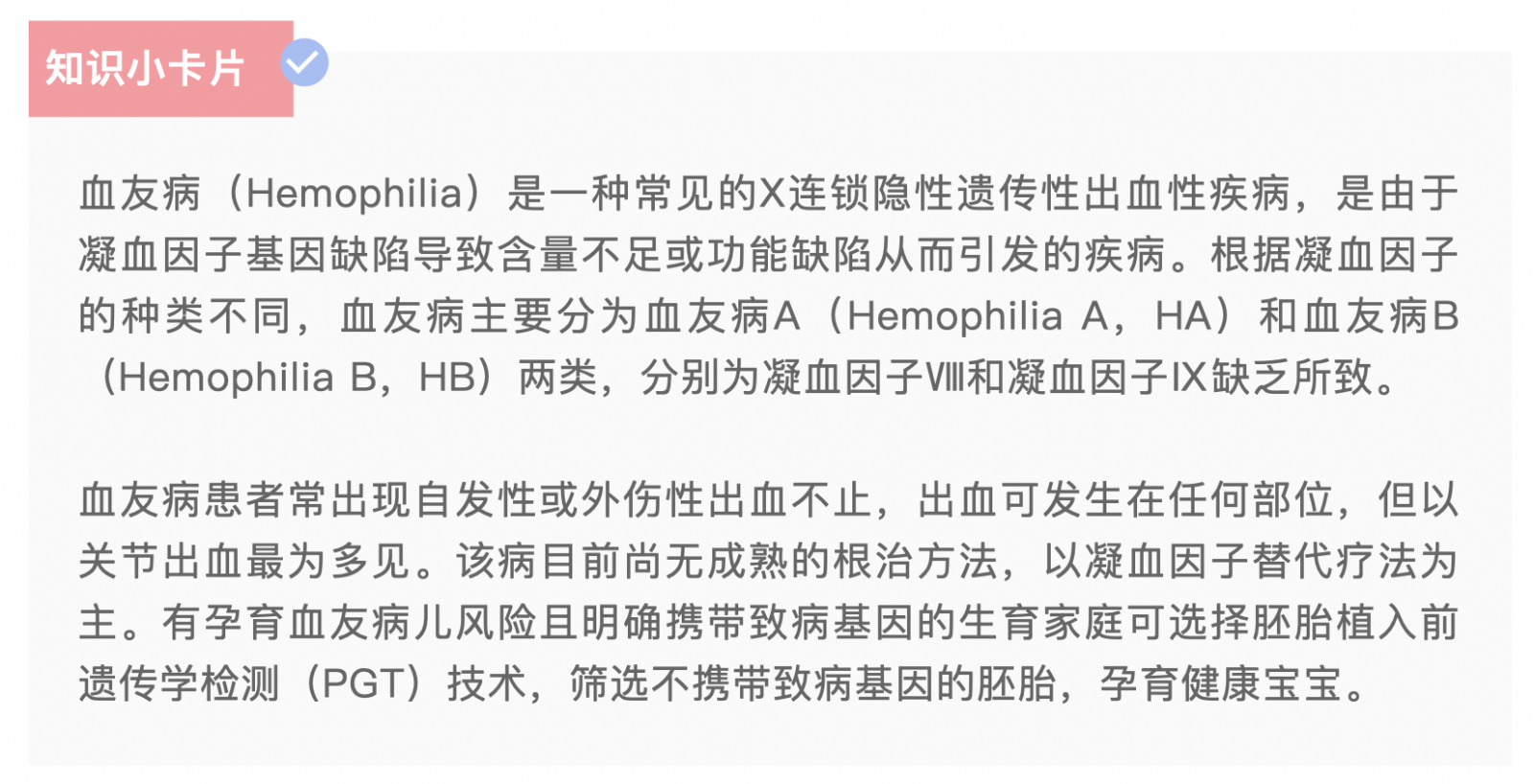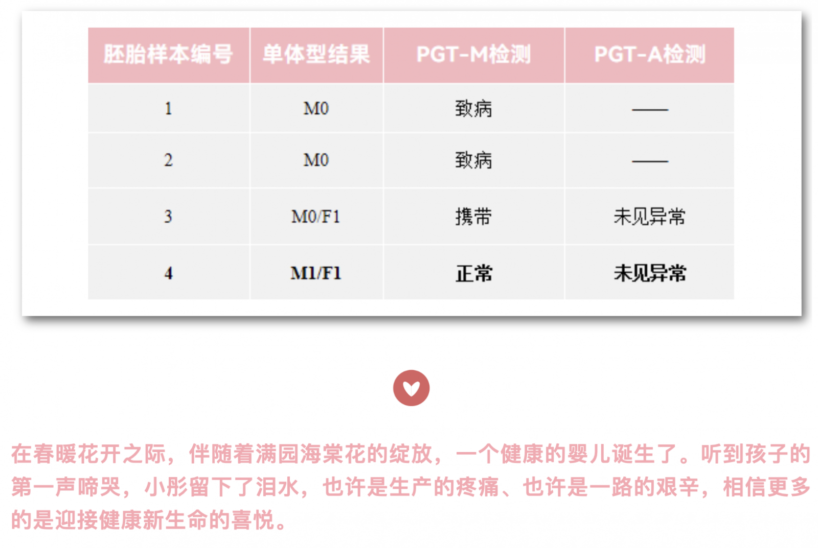 就這樣,小彤夫妻經(jīng)過慎重考慮后,最終選擇了以避免后代患血友病A型為目的的PGT-M檢測。