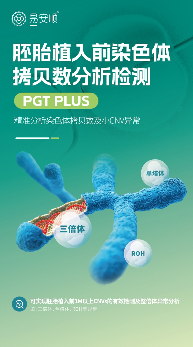 針對于植入前胚胎染色體異常檢測面臨的臨床問題,嘉寶仁和易安順®胚胎植入前染色體拷貝數(shù)分析檢測(PGT PLUS)可實現(xiàn)1M以上CNVs的檢測,彌補了1M~4M之間這一常規(guī)PGT檢測無法覆蓋的分辨率區(qū)域,使得更多pCNVs能夠在胚胎植入前被發(fā)現(xiàn),同時可檢測三倍體、單倍體、UPD/ROH等臨床常見異常,指導(dǎo)植入前胚胎的移植選擇。