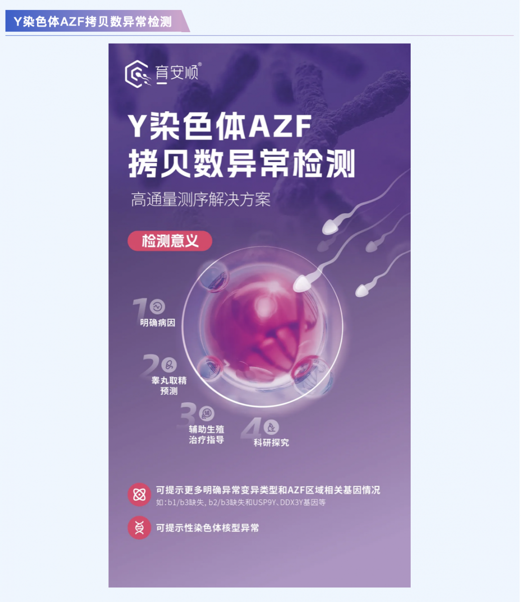 育安順®Y染色體AZF拷貝數(shù)異常檢測,結(jié)合目標區(qū)域捕獲技術(shù)及高通量測序技術(shù),采用Y染色體AZF區(qū)微缺失檢測試劑盒(專利號ZL 2015 1 0679999.1),檢測AZF區(qū)域拷貝數(shù)異常(缺失、重復、倒位等)的具體區(qū)域和大小以及相關(guān)基因情況,從而為男性不育患者提供科學的臨床治療方案和遺傳咨詢指導。