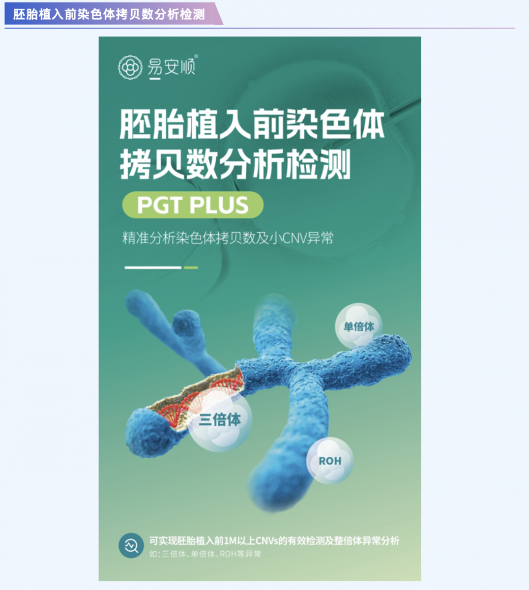 針對于植入前胚胎染色體異常檢測面臨的臨床問題,嘉寶仁和易安順®胚胎植入前染色體拷貝數(shù)分析檢測(PGT PLUS)可實現(xiàn)1M以上CNVs的檢測,彌補了1M~4M之間這一常規(guī)PGT檢測無法覆蓋的分辨率區(qū)域,使得更多pCNVs能夠在胚胎植入前被發(fā)現(xiàn),同時可檢測三倍體、單倍體、UPD/ROH等臨床常見異常,指導植入前胚胎的移植選擇。